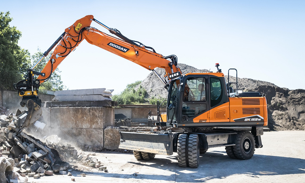 Yürüme ve sevkiyat yeteneği paletli ekskavatöre göre çok daha elverişlidir. Asfalta, betona ve kaplalamalı alanlara zarar vermediğinden genelde şehir merkezlerinde kullanılmaktadırlar. Yine paletli ekskavatör gibi sert zeminlerde kazı yapma, kanal açma, taşıma ve yükleme gibi işlerde kullanılmaktadırlar. Paletli ekskavatörde dengeyi paletler sağlar ve ek bir denge elemanlarına ihtiyaç duyulmazken, lastikli ekskavatörlerde ön ve arka kısımda denge demirleri bulunur. Çalışma yapılacağı zaman iş makinesi dengeye alınarak çalışma yapılır. Lastikler üzerindeyken çalışma yapmak tehlikeli olmasının yanı sıra yürüyüş takımına da büyük zararlar verecektir.